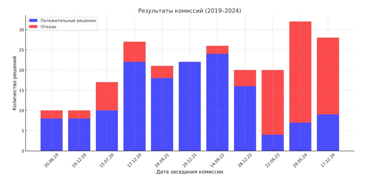 З 2023 года камісіі выдаюць 70-80% адмоў, пры гэтым не тлумачаць прычын і не даюць магчымасці абскардзіць рашэнне. Хіба што прапануюць зноў прайсці камісію, але праз адну — выходзіць, гэта яшчэ год чакання.