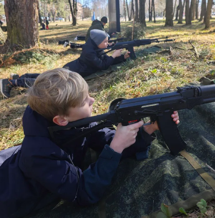 Аднак ваенізаванае «патрыятычнае» выхаванне не абмяжоўваецца толькі школамі. У маі 2022 года Лукашэнка падпісаў закон аб стварэнні і фінансаванні «патрыятычных» клубаў* пад кантролем сілавікоў. Там дзяцей вучаць разбіраць і збіраць аўтаматы, страляць, пісаць «лісты на фронт», ненавідзець ворагаў і «развіваць у сабе гераічныя якасці».