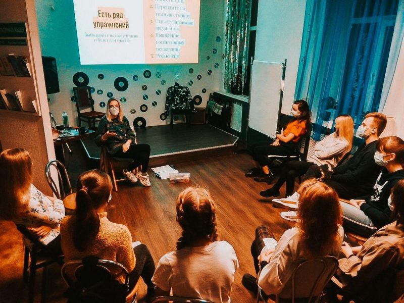 А потом пошла работать в тайм-клуб, сначала администраторкой. В тот момент я не представляла, что можно вот так активничать в городской среде, и что это будет принято нормально. Наташа предлагала мне поучаствовать в проектах вроде «Стартап-школы», «Школы городских инициатив», «Культурный Бобруйск 3.0». Я видела всех этих людей, что они делают в рамках проектов, это было действительно круто. Наташа предложила сделать что-то своё, и так появился клуб «Буковски», который действовал года два. Это было «моё».