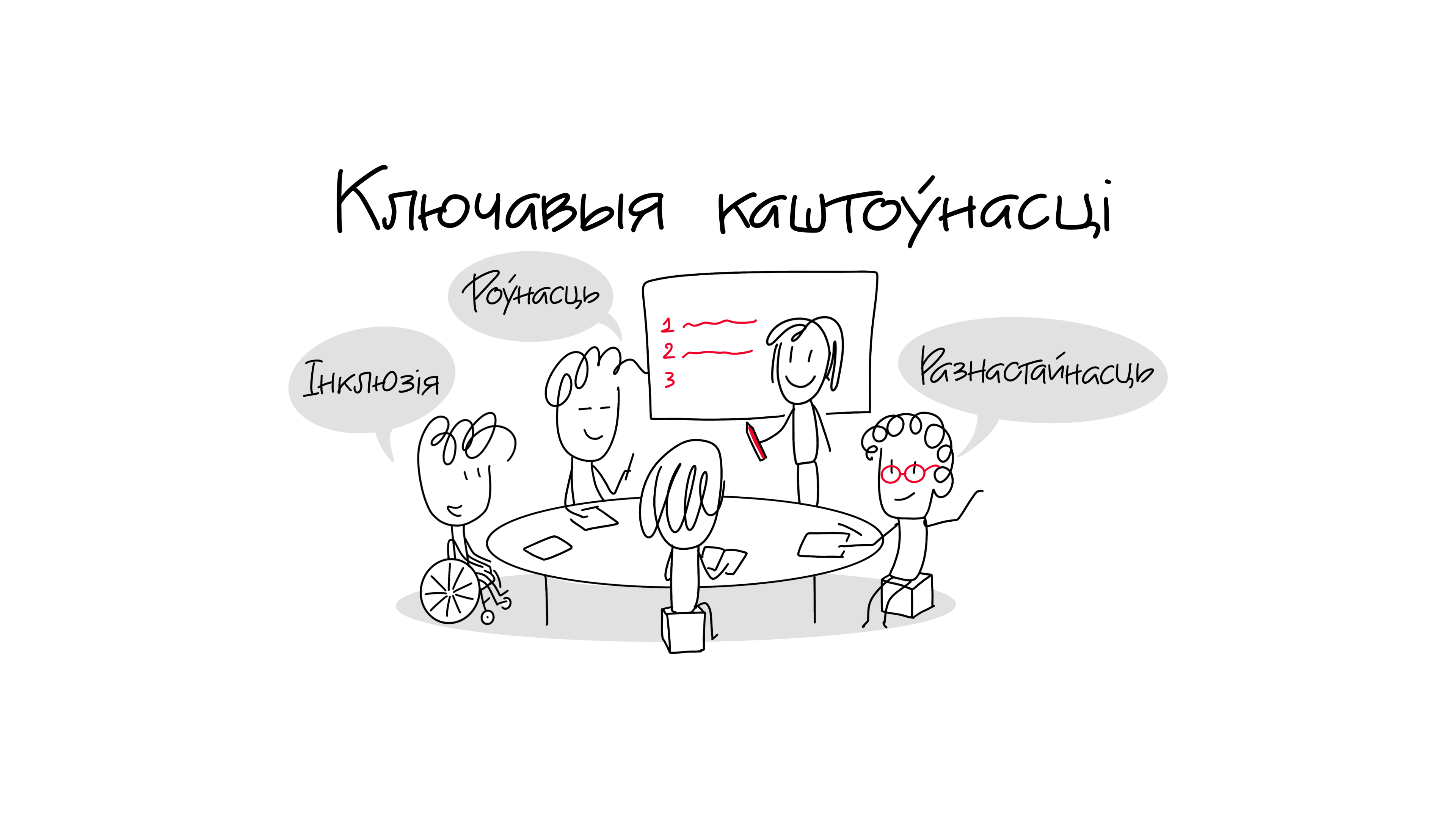 - інтэгруйце інклюзіўны падыход у працу з мэтавымі групамі: забяспечвайце падтрымку іх паўнавартаснага ўдзелу і павышайце патэнцыял уразлівых і недапрадстаўленых груп